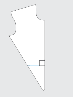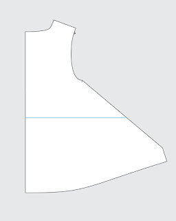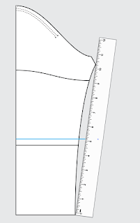 Measure down the back panel from the nape to the waist and draw a line across the width, perpendicular to the center back. (shown in blue)