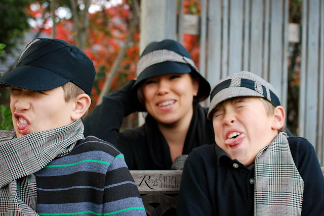 I drafted all the patterns myself and I am quite pleased with the results. The boys' hats each have hidden pockets too. Its the little features like that that make sewing for boys so much fun.