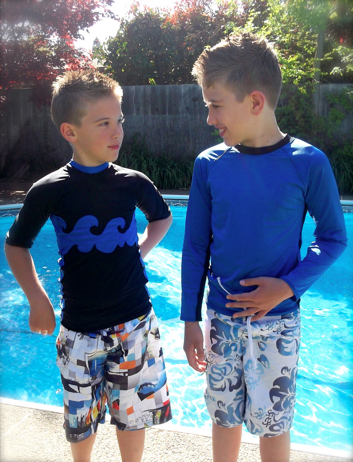 That Last shot is great right? Boys will be boys. Well, you can see they really love these rash guards. And I loved making them! The fit is perfect. The pattern sewed up so quickly that I was almost surprised when I was done. My boys are already asking me to make them more. They are just what we need for the cool weather on the Oregon Coast :)