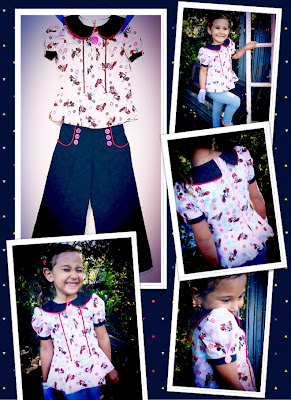 For this one I added pintucks and piping! Saying those words together like that just makes me smile :) I also modified the sleeve from a cap sleeve to a puff sleeve with a little pleat and button detail. I thought it was a little more Minnie Mouse like that way. Every little ounce of this shirt just makes me want to squeeze it! Okay, that wouldn't accomplish much. But if it fit me I would definitely sport it around. And what is an adorable shirt without pants coordinate it with? For this I