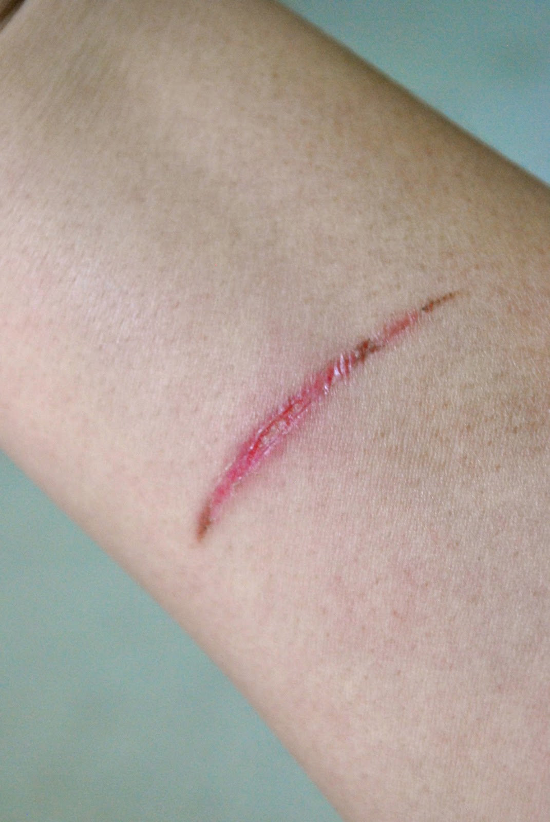Translation: I was burned by my iron while trying to sew at 3 in the morning. Doh! That's gonna leave a scar. Despite my best efforts to minimize damage, the scab came off in the shower today leaving my arm looking like this :(